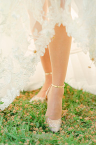 Zwei Looks hatte sich die Braut für ihren großen Tag ausgewählt: zunächst für die Trauung ein klassisches Prinzessinnenkleid mit Spitze von Passion Brautkleider, das ihre filigrane Silhouette und ihre natürliche Schönheit betonte. Zahlreiche Details setzten Akzente am Kleid. Das klassische Styling passte sich diesem Outfit an und ließ die Braut strahlen. Für den zweiten Teil des Hochzeitstages hatte sich Karoline für ein extravaganteres Abendkleid von Claudia Klimm La Novia entschieden. Auch Kajetan wechselte zum Abend sein Outfit. Nach dem Frack mit grüner Weste zur Trauung trug er später ein Samtsmoking-Jackett und dazu die kennzeichnende Couleur seiner Verbindung am Band.