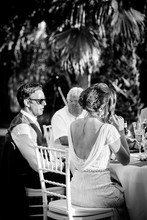 Louise und Alex haben ihre persönliche Note - im wahrsten Sinne - über ihre Leidenschaft für Musik in die Hochzeit eingebracht. Musiker und DJ sorgten für den Sound ihrer Ibiza Hochzeit. Die Trau-Zeremonie wurde von einem spanischen Gitarristen begleitet. Während des Empfangs sorgte ein Gesangsduo für die musikalische Untermalung. Zur Party legte dann DJ Tom Grimes mit Electro Vibes auf. Eröffnet hat das Brautpaar die Party übrigens zum Song “Sex on Fire” von Kings of Leon.