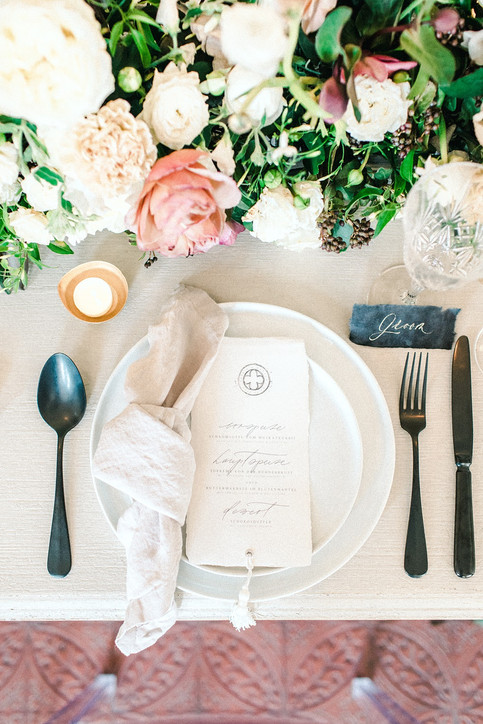 Die Wedding Stylistin Melanie Sharma hat sich bei der feinen Tischdekoration ganz bewusst für blushige Pastelltöne entschieden.